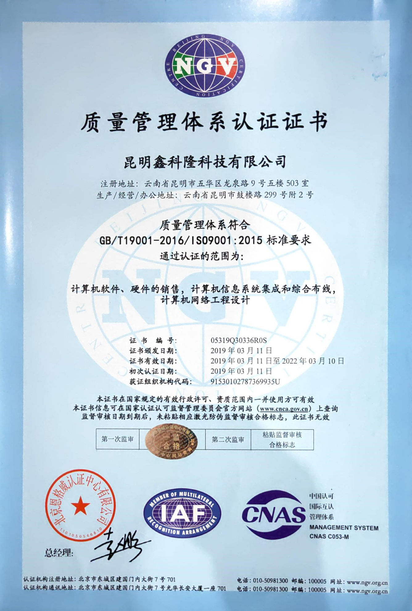ISO9001质量管理体系认证证书